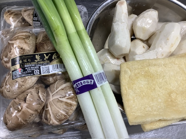 いりこ、かつお節でしっかりとお出汁をとったものに、旬のものである原木椎茸、深葱、里芋がたっぷり入りました。