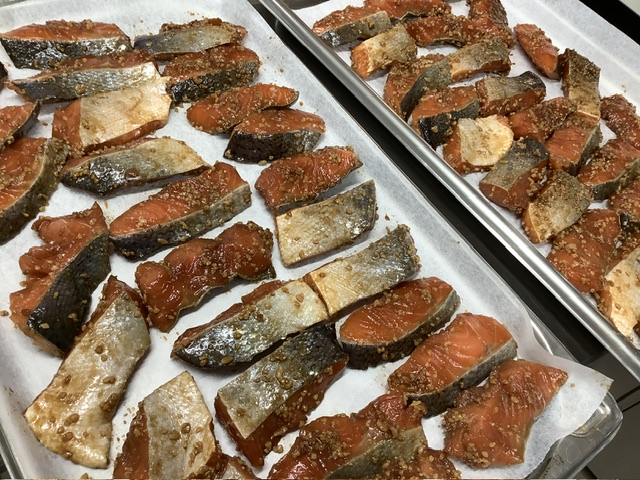 鮭の量に対して10%の醤油麹につけ込み、焼き上げます。