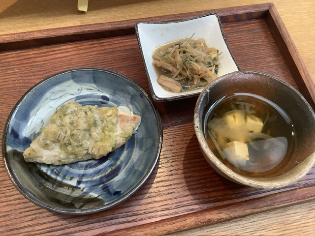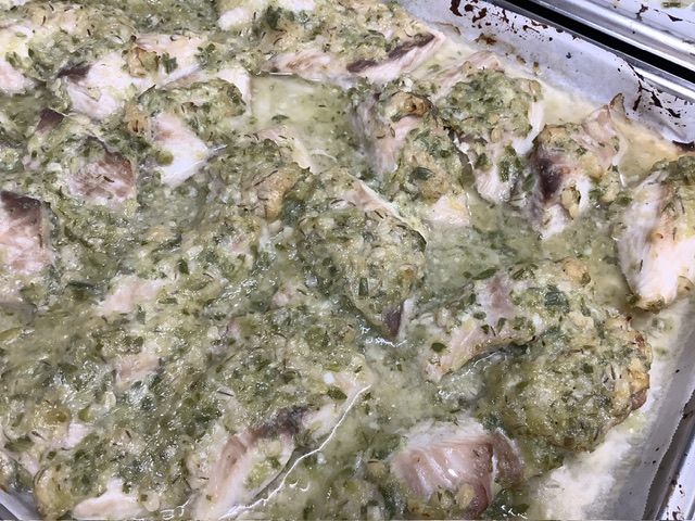 フードカッターで細かくみじん切りにした深ねぎに、麦味噌やきび糖・みりんを混ぜて作ったねぎ味噌を、しいらに乗せてオーブンで焼き上げました。
