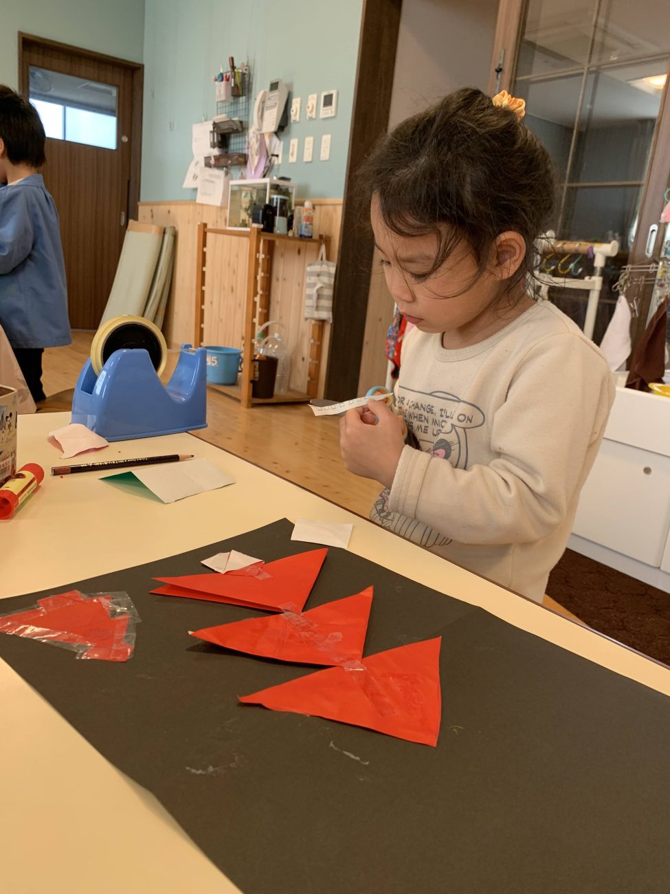 自分の中にあるこいのぼりのイメージと実際に泳いでいるこいのぼりを重ね合わせると、難しかったようです。しかし、