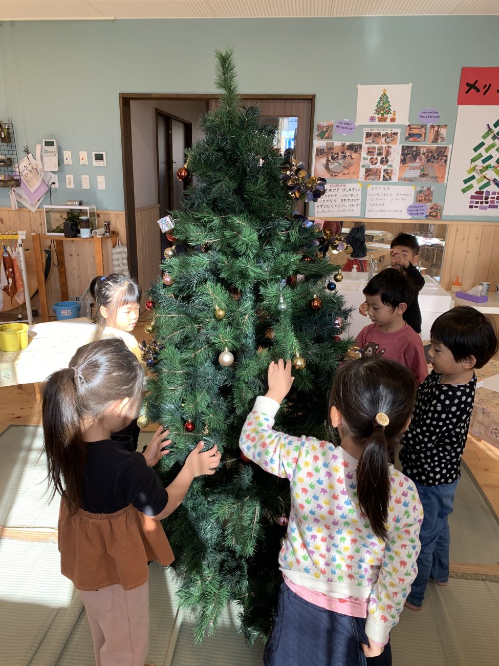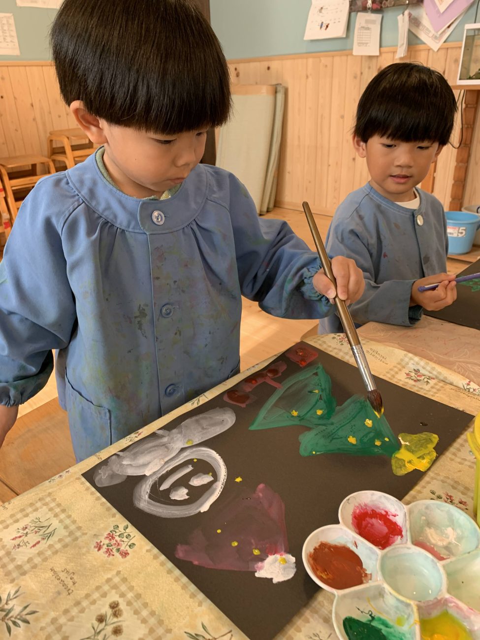 ツリーは緑!と私たち大人の価値観で決めつけず、赤色での表現する等、子ども一人ひとりの感性を大切にしていきました。