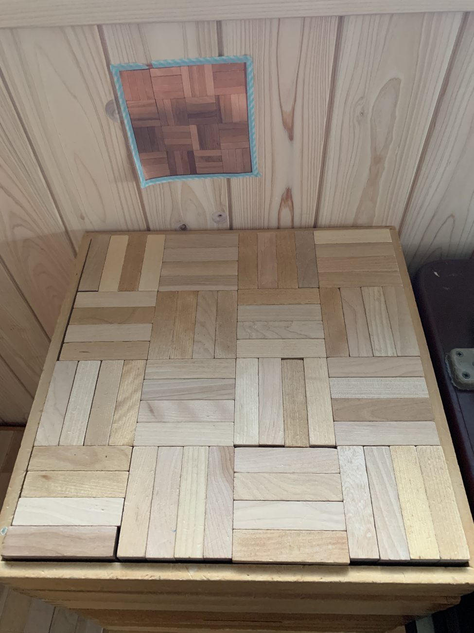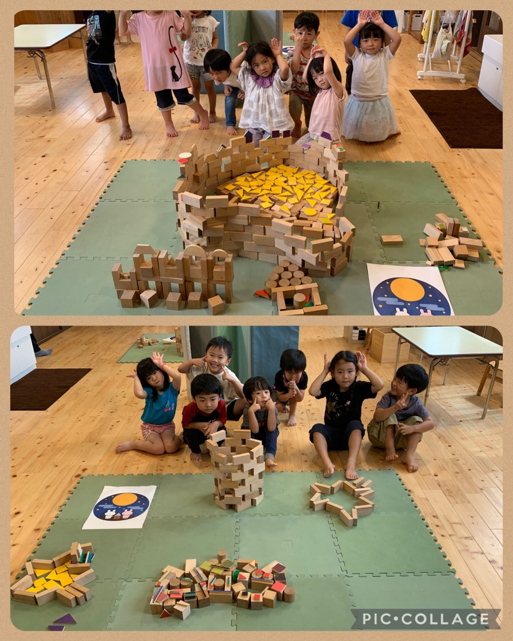 お月見の季節だったので、イラストを表現しました。最初より、少し複雑な構造で対象物もいくつかあり、難易度が上がったお題でした。しかし、何回か経験する事で「話し合ってから活動を始める」ということができるようになっており、役割分担がスムーズにできていました。