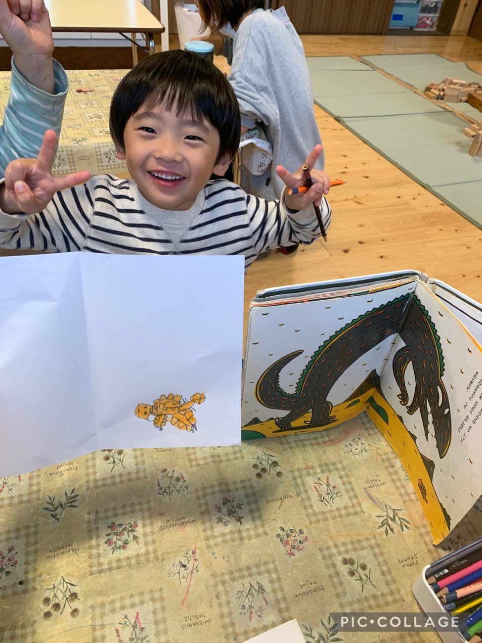 お気に入りのキャラクターや絵本の真似をして描く事やハロウィンの時期はカボチャやお化けを想像豊かに描いて楽しんでいました。