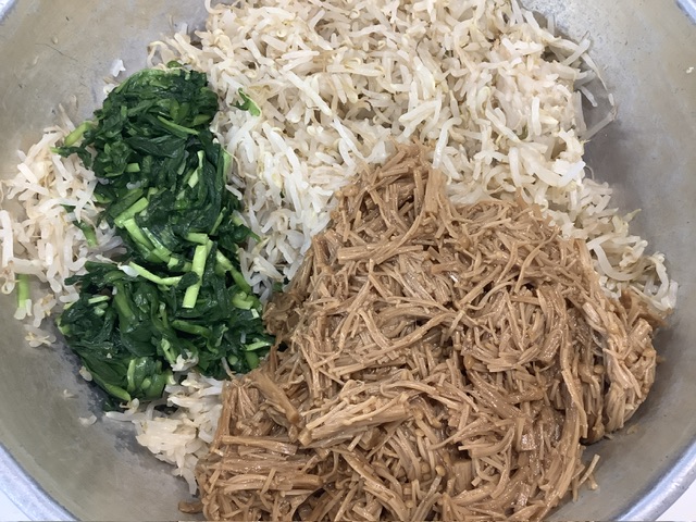 今日は、ざく切りにしてスチームで加熱したもやしとニラを手作りなめ茸で和えました。