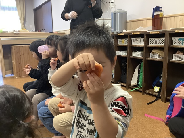 子どもたちに「中に何が入ってると思う?」と聞いてみると、「チーズ!」「お肉の味がしたよ」と教えてくれました。「わくわくする味!」と、素敵な表現でおいしさを伝えてくれる子もいました!