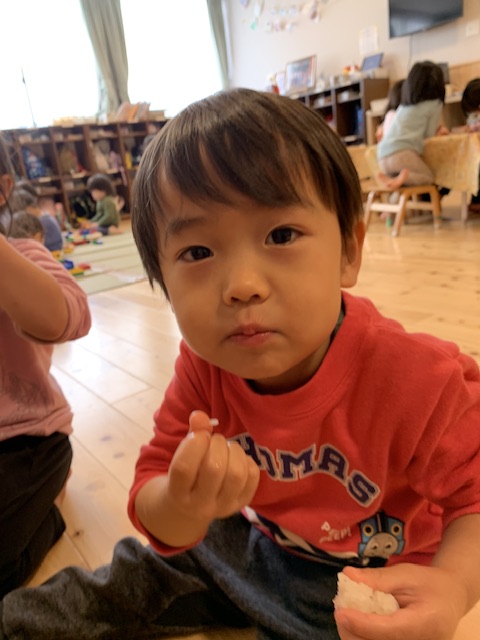 誤嚥や窒息事故防止のため、きく組・ゆり組・さくらんぼ組はつく前のもち米を食べました。