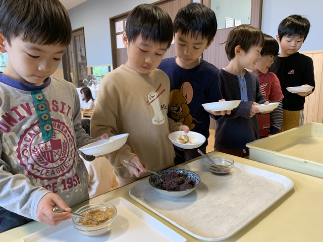 あんこ・きなこ・醤油のトッピングをのせて色々な味を楽しみました!
