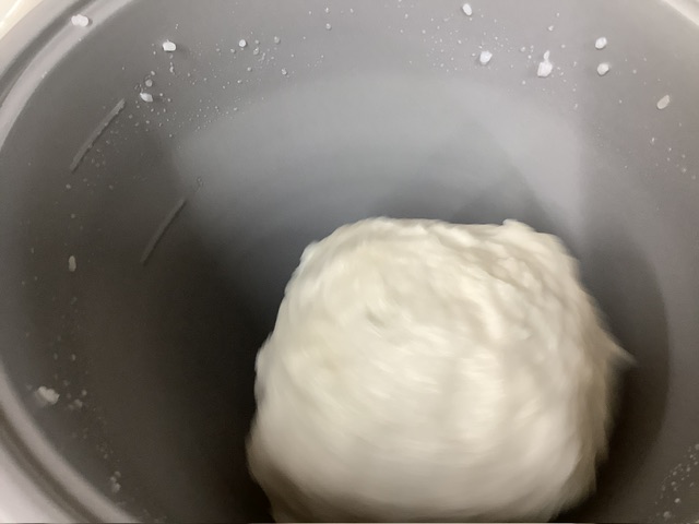 給食室では、もちこね機を2台稼働して餅をついていきます。