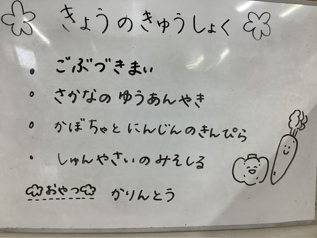 35ファームのかぶと小松菜、玉ねぎが入り、野菜の甘さや旨みが効いた美味しいお味噌汁に仕上がりました。今日は、一段と寒かったので心も身体もあったまる、ホッ♡とする献立でした。