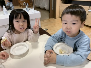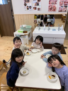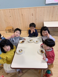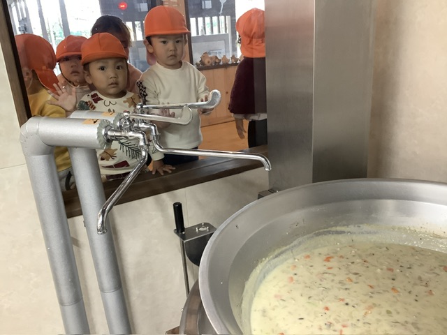 さくらんぼの子どもたちが給食室に遊びに来てくれましたよ♪