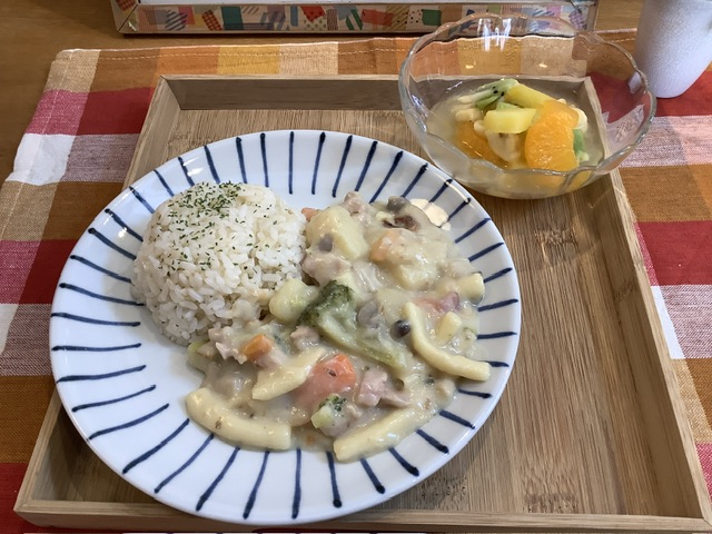 クリスマスメニューは、具沢山の手作りシチューでした。