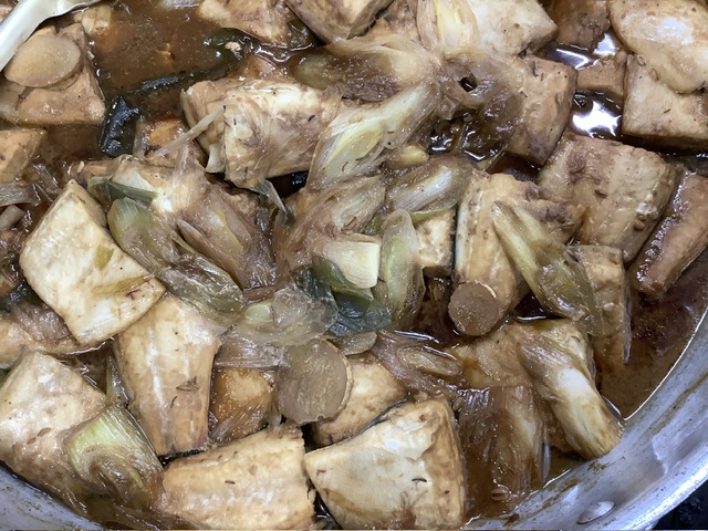敬愛から届いた脂ののった鯖、35ファームの深葱、生姜で味噌煮を作りました。