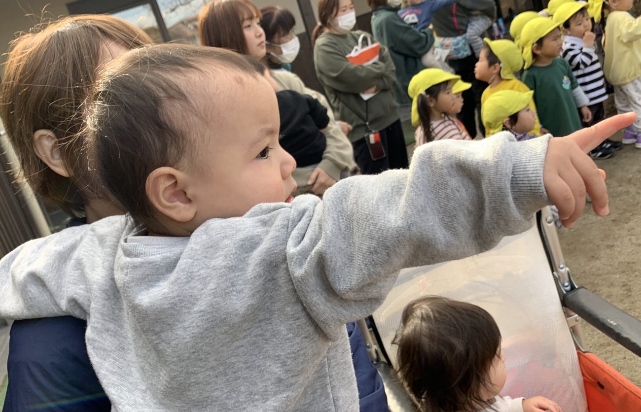 隣のこども園とまふぃんの子ども達も園外の一般道路を歩いて鬼火焚きに参加してくれました。行事を終え帰って行くときに互いに笑顔で「バイバーイ!」と手を振り合う姿は、いつ見ても心が温かくなります。思いのまま行動出来るこども達は初対面でもすぐに打ち解け合い、笑顔を交わしています。大人になるにつれて、忘れてしまう気持ちをこども達の姿から思い出し勇気をもらいます。