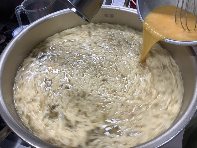 子どもたちが大好きなかき玉汁は、卵がフワッとなるように仕上げています。