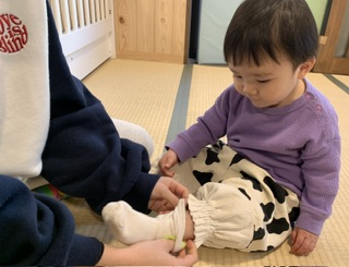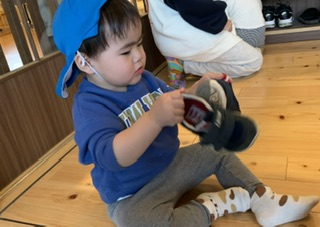子どもたちは自分の靴がどれなのか覚えているため、自ら履こうと頑張る微笑ましい場面もあります。