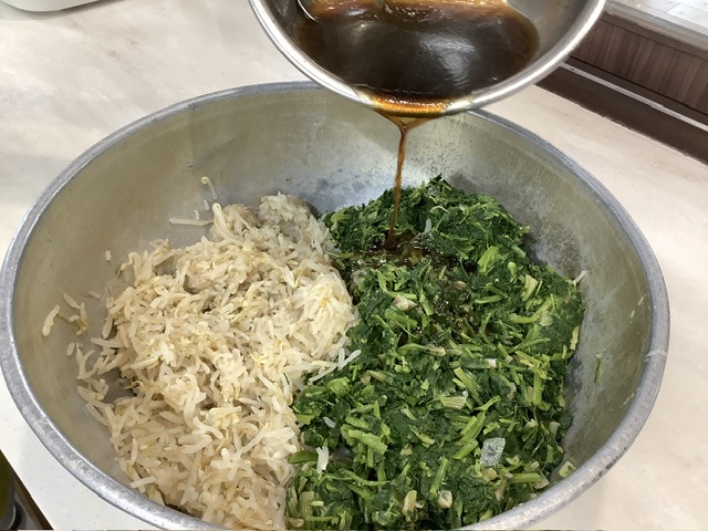 35ファームのほうれん草を使用しています。濃口醤油、酢、ごま油、きび糖、白ごまを合わせます。