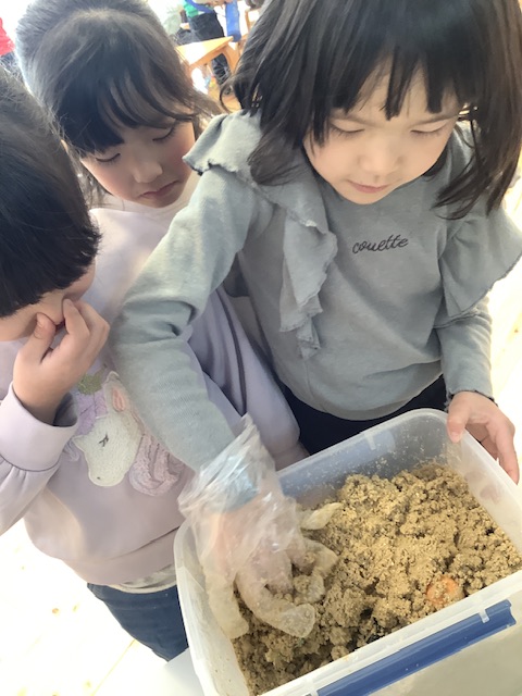 「くさ~い」「味噌みたい」「泥団子みたいなかんじ!」など、子どもたちならではの言葉が沢山でてきます。