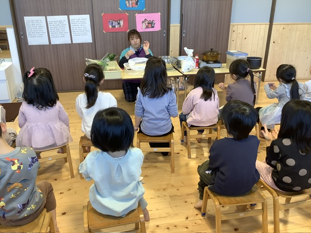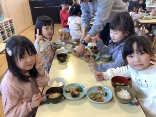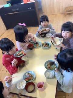 1月29日、さくら組では全て子どもたちで作った、「お米」「味噌」「ぬか床」で給食を作りました。