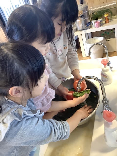 子どもたちの切る野菜はゴロっとして味があって良いですね😋