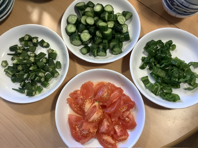 ぬか漬けは、きゅうりは漬かりすぎていて少ししょっぱく、顔をすぼめる子どもたちでしたが、オクラ・ピーマン・トマトは丁度良く漬かっていて、とても美味しいでした。トマトのぬか漬けの仕上がりが気になっていましたが、とても美味しく、次回の給食でトマトのぬか漬けに挑戦してみようと思った給食チームでした☆