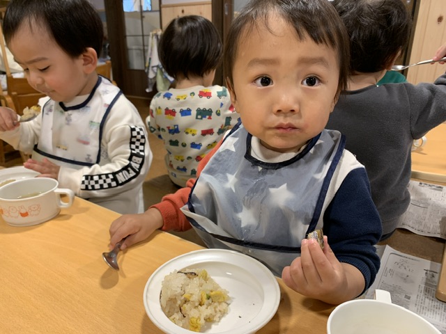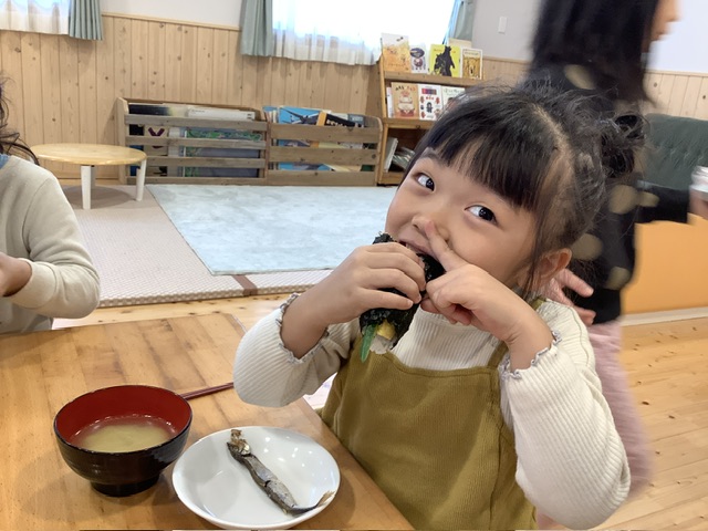 いつもと少し違う酢飯の味に慣れない子もいましたが、ぱくぱくと食べている様子でした。