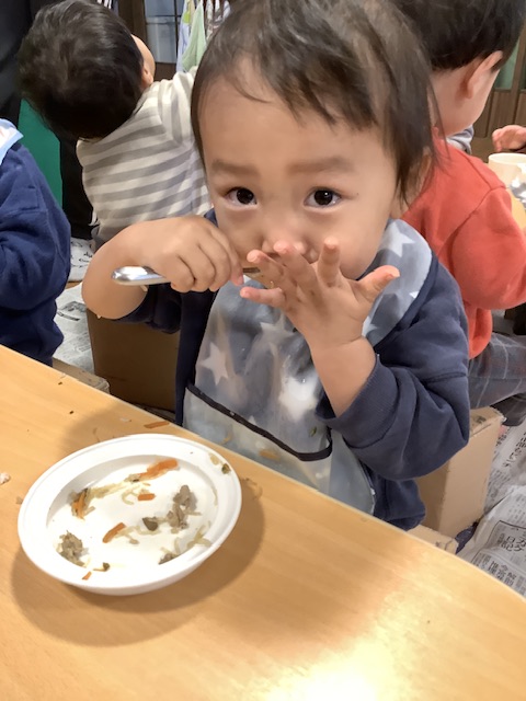 さくらんぼのクラスでは、お腹が空いていたのか食べ切るペースが早く何度もお代わりをしてくれていましたよ!