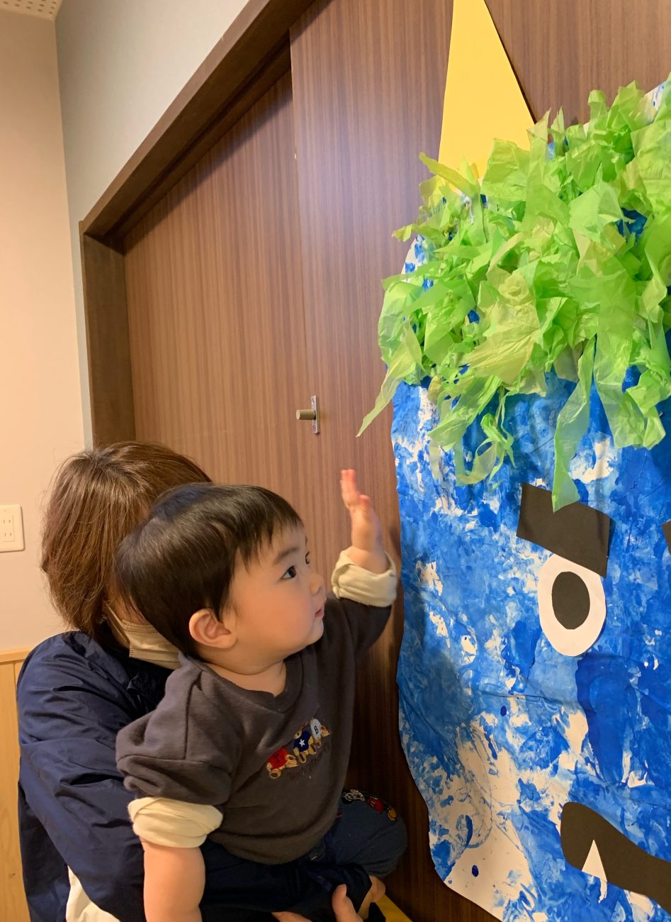 自分達で作り上げた鬼の顔を見て親しみが湧いたのか、いつもはあまり人気のない鬼の人形も、この日ばかりは大人気。次々に嬉しそうに指差しして近寄っていました。