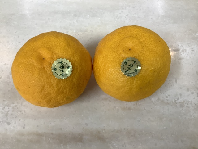 こちらは、徳島県那賀町木頭地区で生産されている日本一の柚子ブランド”木頭ゆず”という品種です。木頭ゆずの特徴は、芳醇な香りと酸味の強さがあり高品質な為、よく日本料理亭で使われているそうです。
