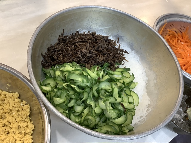 きゅうり、にんじん、炒り卵、そして下味をしっかりつけたキクラゲが入り彩りがとてもキレイです。