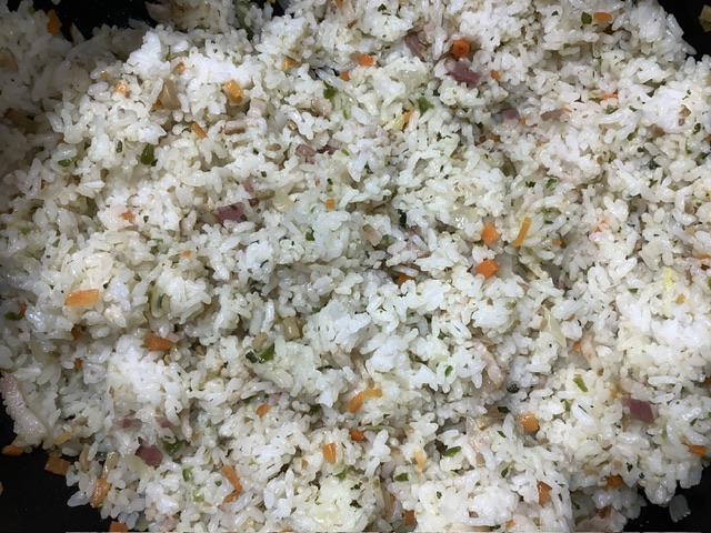 南州農場のベーコンをたっぷり使い、ピラフを作りました。