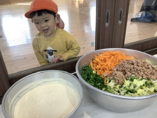 今が旬の菜の花。こども達の大好きなツナと手作り豆乳マヨネーズで和えることで、菜の花の苦味も和らぎ、美味しく仕上がりました。