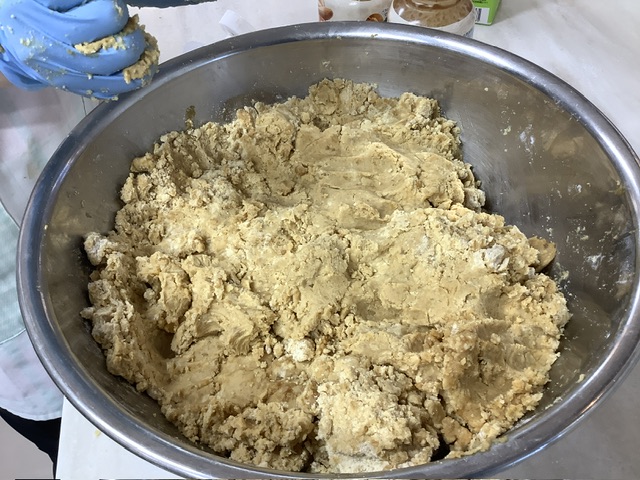 圧力鍋で炊いたひよこ豆を潰し、米粉、バター、きび糖、豆乳、ベーキングパウダーを加え、生地を作ります。ひよこ豆がたくさん入っているので、ホロホロとした触感で、噛めば噛むほどひよこ豆の旨みを感じる、とても美味しいクッキーに仕上がりました。