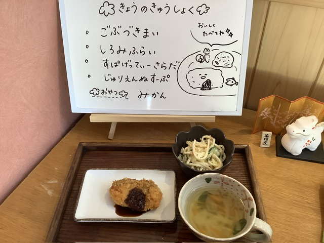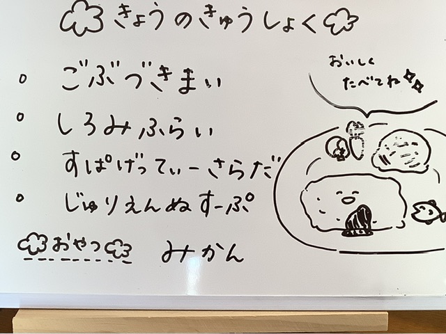 ランチルームの様子を見ていると、「スパゲッティサラダ〜♪」と歌っている声が聞こえてきて、こどもたちの嬉しさが伺えました☺️