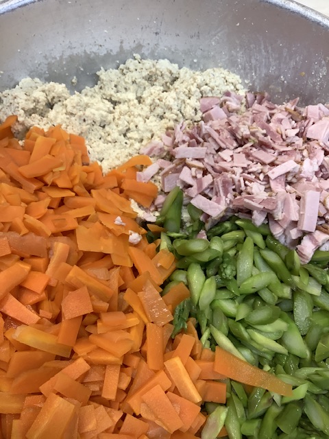 今日の白和えにはアスパラが入りました!キレイな緑色です。