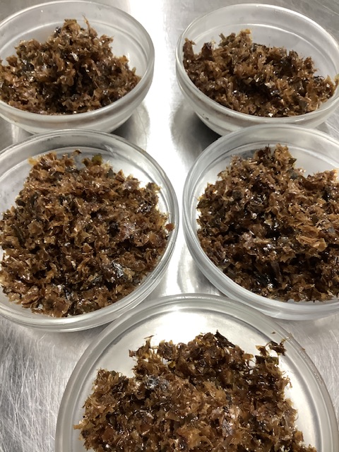 給食室では、毎日のように、丁寧に出汁をとっています。その際使用している昆布やかつお節達を捨ててしまうのは、もったいない!だしがらにも、まだ旨みは残っています。ひと手間加えて、ふりかけにしちゃいます♪