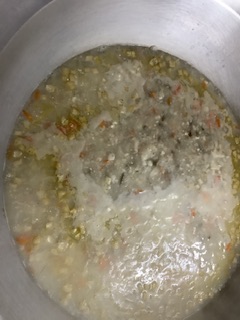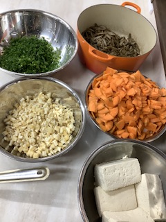 大根、人参、薄揚げ、蒸し煮したごぼう、木綿豆腐は崩し、味噌で味付けしました。