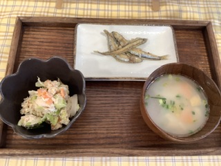 とてもありがたいことに、錦ヶ丘では山や畑をもっている職員や近所の方から、旬のお野菜をお裾分けしていただけることも多いです。その野菜を使い、献立に取り入れることもあります。