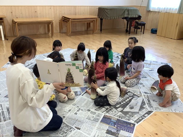 たけのこの成り立ちを描いた絵本をみんなで見てから始めましたよ!