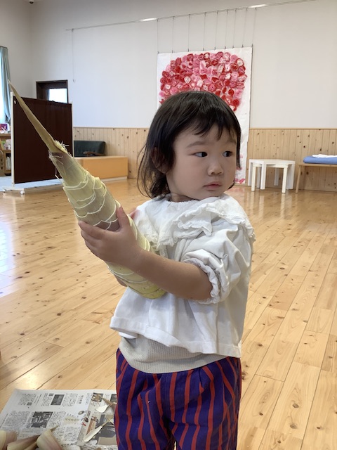 たくさんのタケノコにたくさんの皮、「どれがタケノコ?分かんなーい(笑)」と皮を潰しながらタケノコを探す子もいましたよ!
