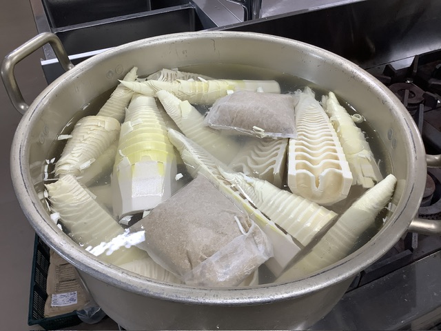 給食の時間に間に合い、薄く切ったタケノコを酢味噌で和えてみんなで頂きました♪