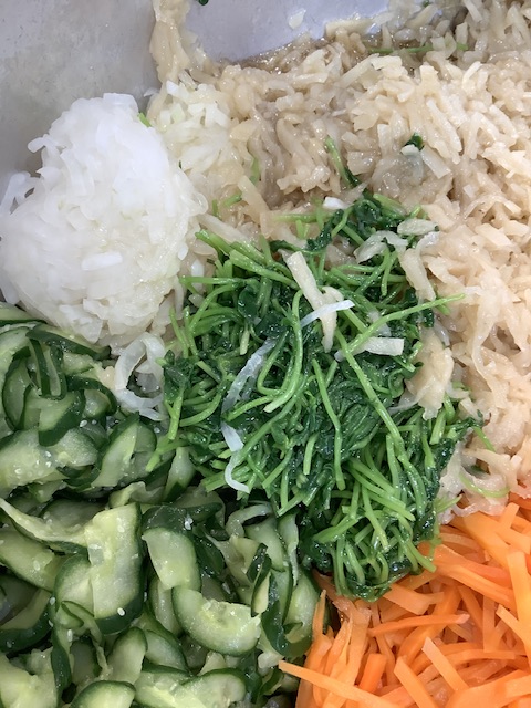切干大根の他にも、きゅうり、人参、豆苗を入れて、調味料で和えました。程よく歯ごたえがあって、さっぱりと食べられる一品になりました。