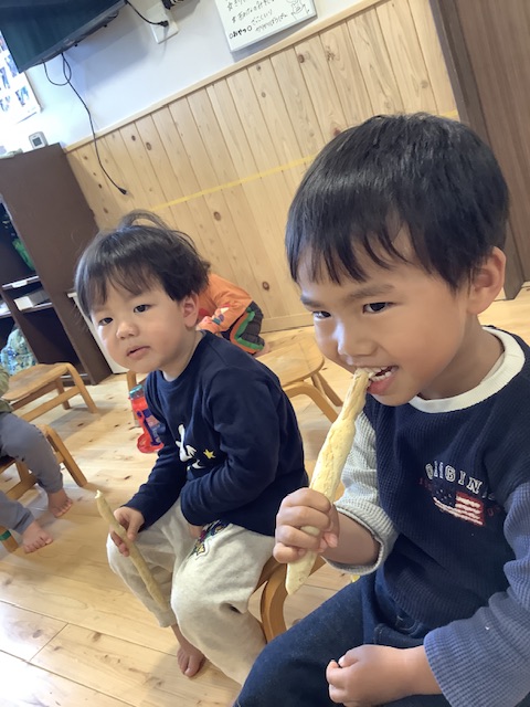 久しぶりのカリカリ棒パン!何を作っているのかなー?と遊びに来てくれました♡