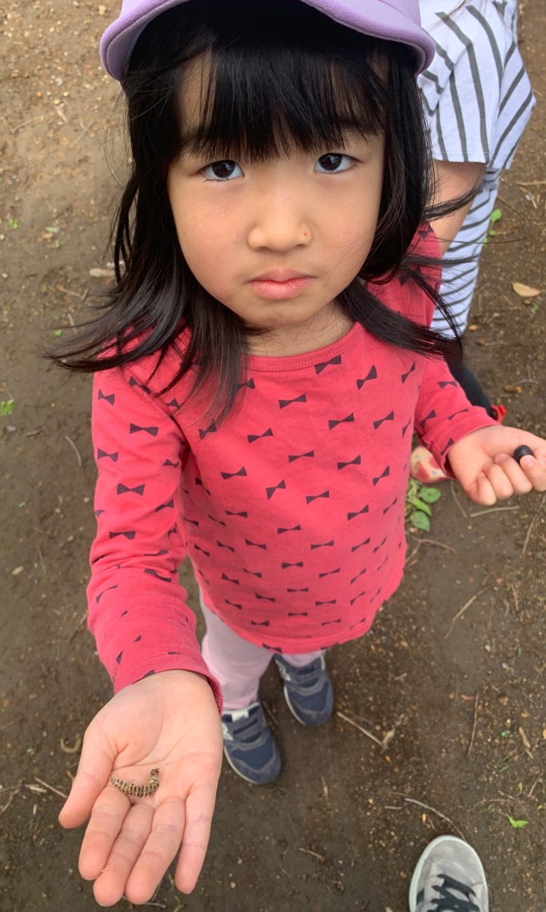 蜘蛛や蟻、カマキリの卵など、怖がらずに何でも手に取ってかわいがる姿はあっぱれ以外の言葉が見つかりません。