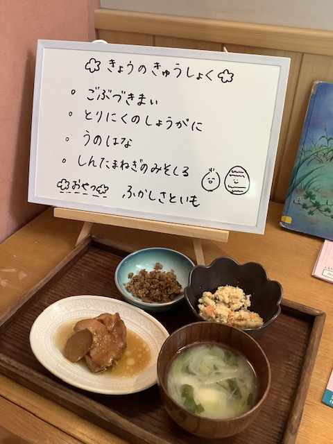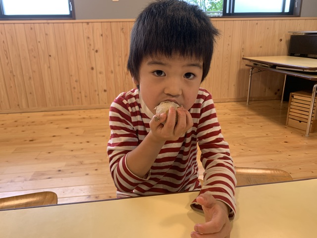 今日のおやつは、さくら、ももは、ゆでさといもに変更になりました。