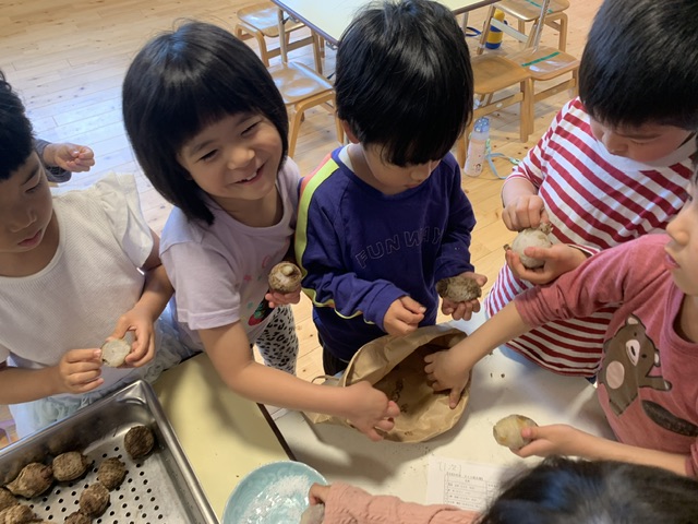 子どもたちには、自分で皮をむいてもらい、塩だけの味付けで、ホクホクした里芋の食感と素材の味を楽しんでもらいましたよ。
