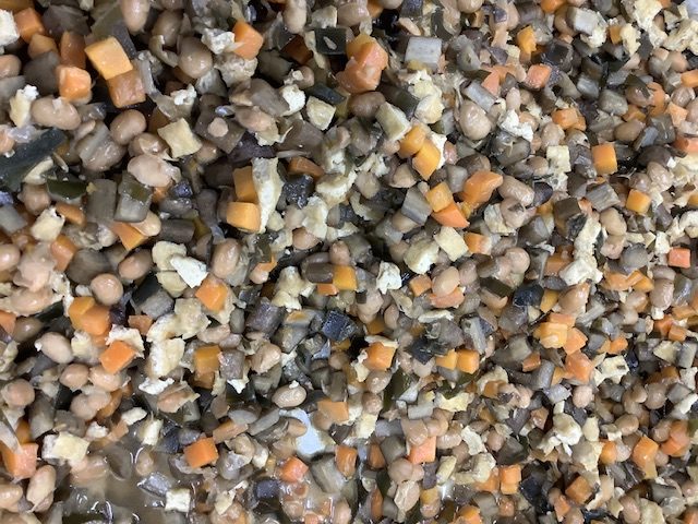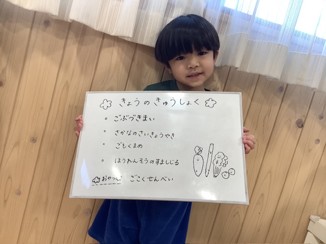 今日の五目豆には、大豆、昆布、人参、ごぼう、油揚げが入っていましたよ⭐︎