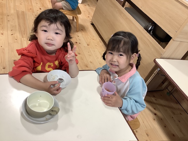 仲良しな2人。あと少しで食べ終わるねー!と声をかけ合っていましたよ♡