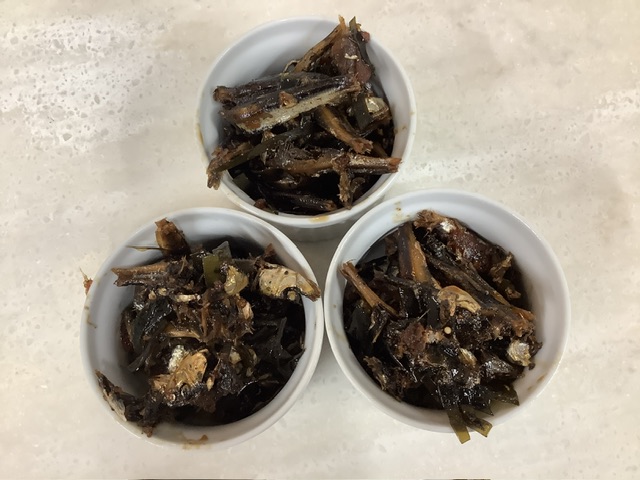 いりこは梅佃煮にしました。カルシウムも取れ、しっかり噛むことで顎の発達にも繋がります。