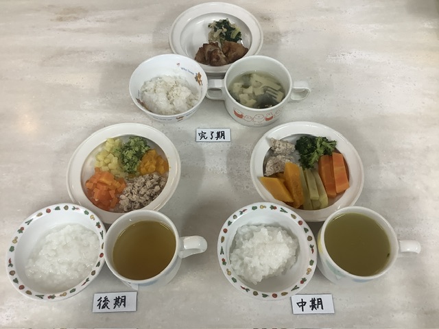 近年、食生活の変化などから、昔と比べて口に力を入れて噛む必要のある食べ物が少なくなったため、噛む回数が減り、咀嚼力が衰えてしまうこども(大人も)が増えているそうです。錦ヶ丘では、こども達に食材を“かじり取る力”をつけさせる為に、歯ごたえのある食材や切る大きさを工夫しています。