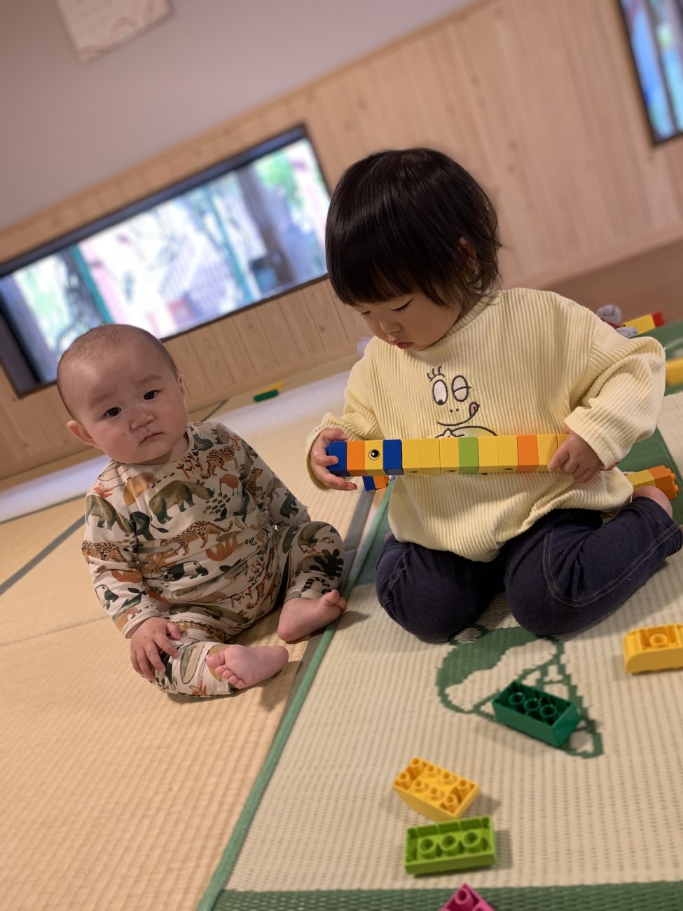 入園・進級して1ヶ月が経ち徐々に園の環境に慣れてきて、0歳児、1歳児の子ども同士の関わりも見られてきました。